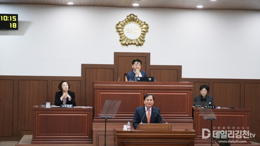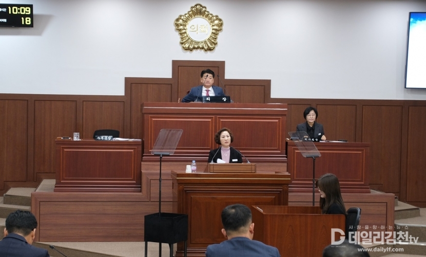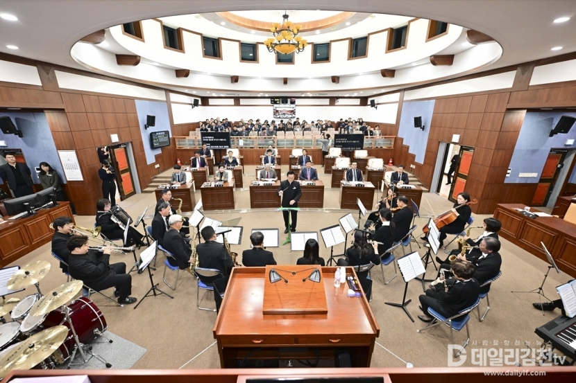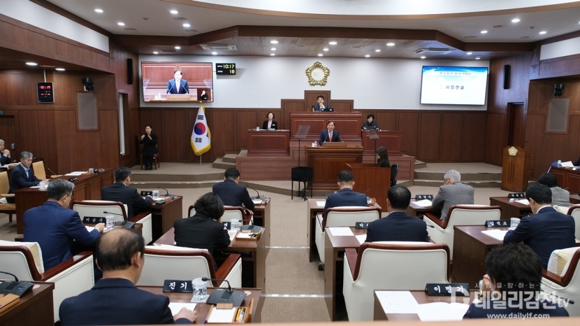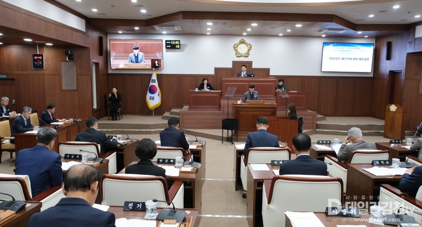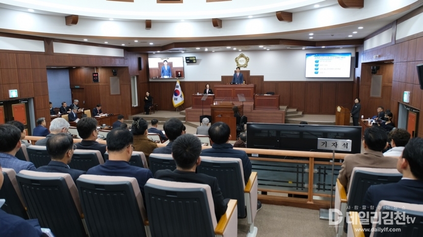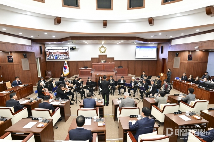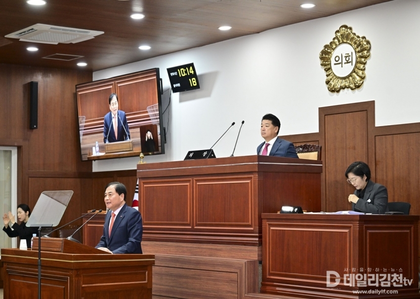 정례회 첫날인 26일 본회의장에서 이부화 김천 팝스 오케스트라 공연을 시작으로 의원과 집행부 공무원 등이 참석한 가운데 개회식을 가진 후, 제1차 본회의를 개의하여 배낙호 김천시장으로부터 2026년도 시정 구상을 밝히는 시정연설과 기획예산실장으로부터 2026년도 예산안 제안설명을 청취했다.