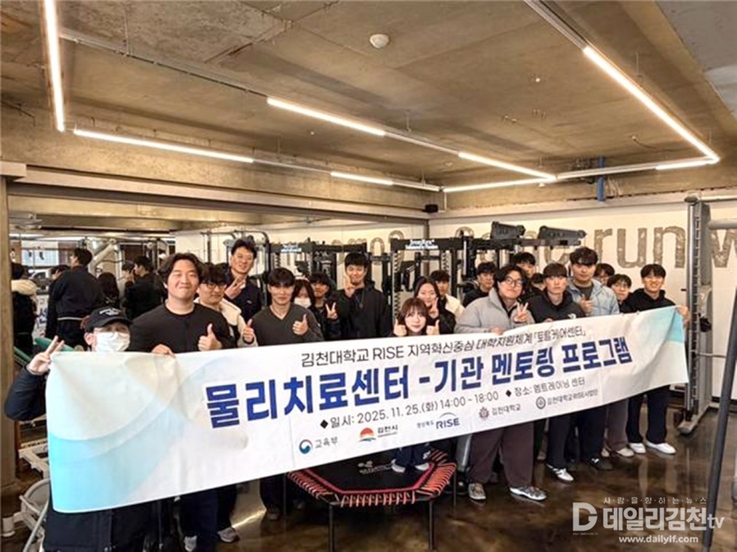김천대학교(총장 윤옥현) RISE사업단 토탈케어센터(책임교수 김동훈) 과제의 일환으로 물리치료학과 학생들이 지난 25일 지역 재활 전문기관인 엠트레이닝센터(M-Training Center)를 방문해 기업탐방 프로그램을 성공적으로 마쳤다.