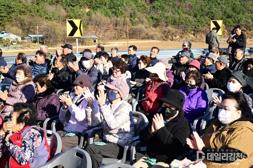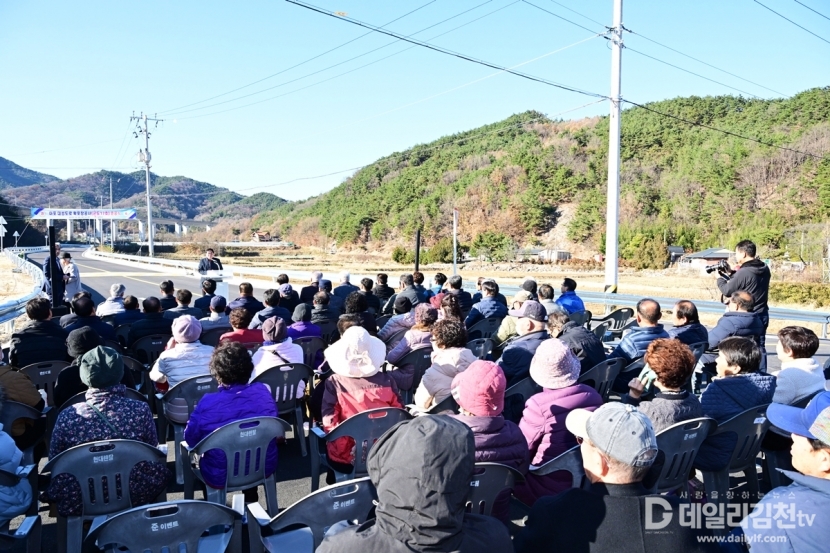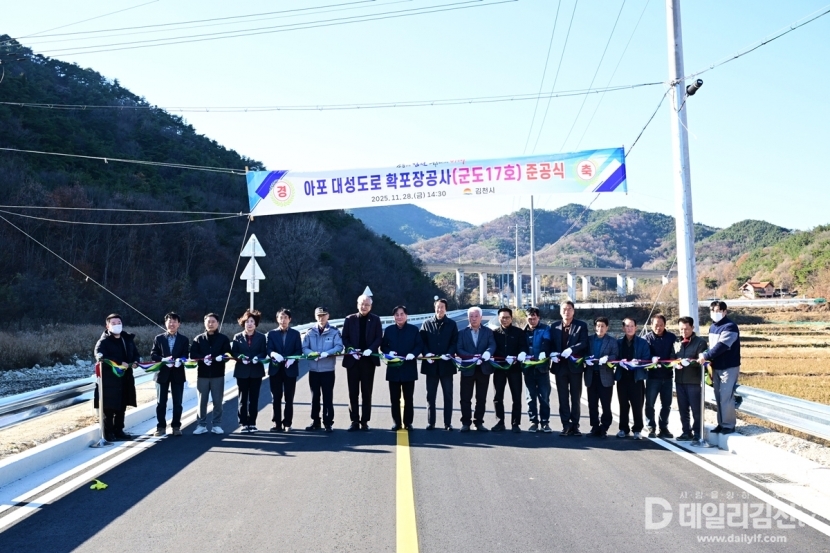 김천시(시장 배낙호)는 지난 28일 아포읍 대성리 주민의 오랜 숙원사업인 아포 대성도로(군도17호) 확포장공사를 완료하고 도의원 및 지역구 시의원, 지역 주민 등 100여 명이 참석한 가운데 준공식을 개최했다.