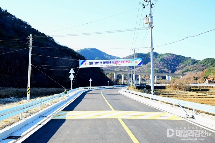 대성도로(군도 17호) 개통으로 아포읍 대성 1리와 대성 2리 간 운행 거리가 2㎞ 정도 단축돼 지역 주민들은 더 빠르고 편리하게 안전한 도로를 이용하게 됐다.