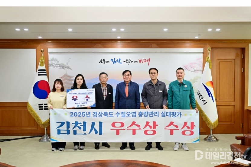 김천시는 지난 26일 경상북도가 주관한 ‘2025년 경상북도 수질오염총량관리 실태평가’에서 우수상을 수상했다고 밝혔다.