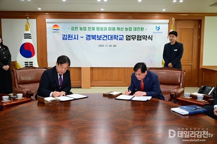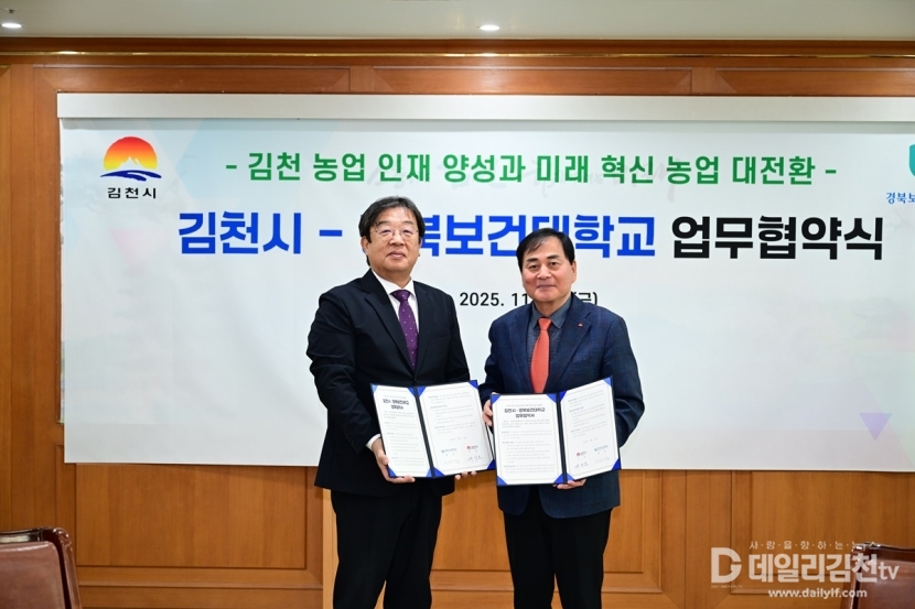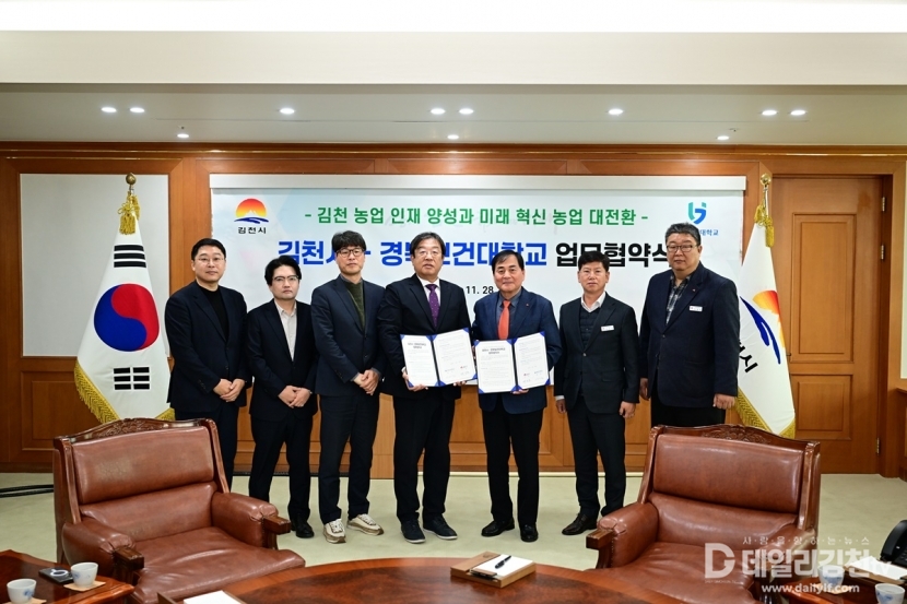 김천시(시장 배낙호)와 경북보건대학교(총장 이은직)는 지난 28일 ‘김천 농업 인재 양성과 미래 혁신 농업 대전환’을 위한 업무협약을 체결했다.