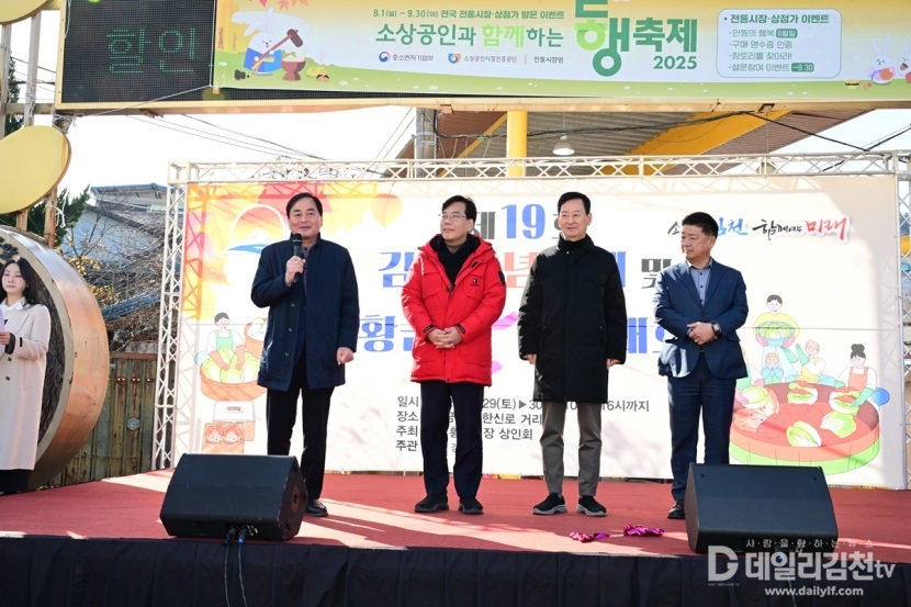 김천황금시장 상인회(회장 박선광)는 지난 28일 ‘제19회 황금시장 김장양념축제’에서 김치 30상자를 관내 경로당에 기부하여 지역사회의 따뜻한 나눔을 실천했다.