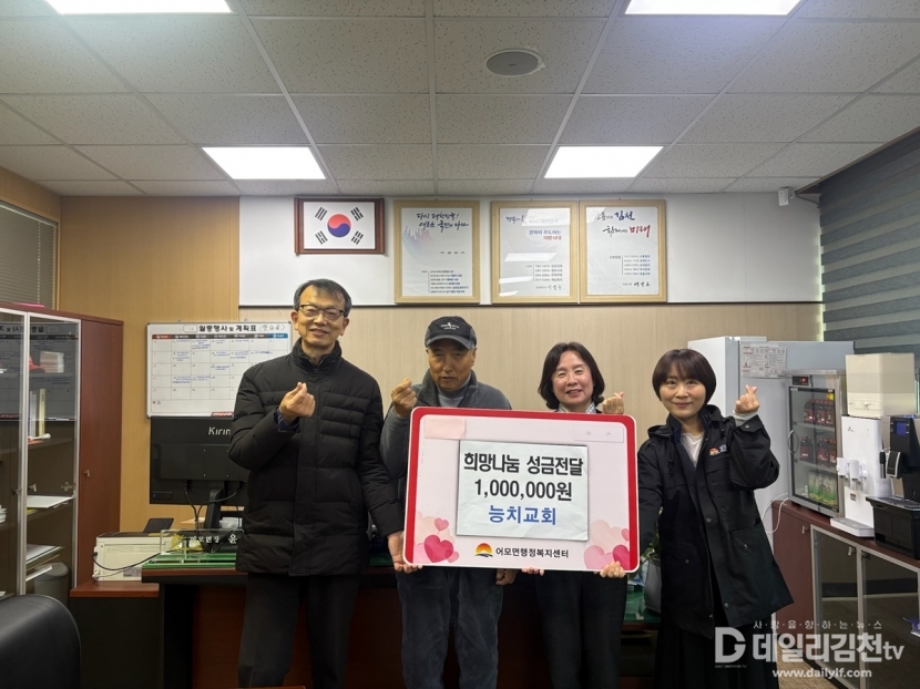 윤숙이 어모면장은 “매년 잊지 않고 따뜻한 나눔을 실천해 주시는 능치교회에 감사드린다.”라며 “기탁된 성금은 도움이 필요한 소외계층을 위해 소중히 전달하겠다”라고 전했다.