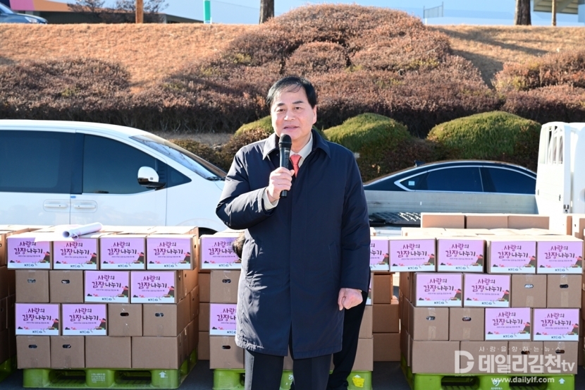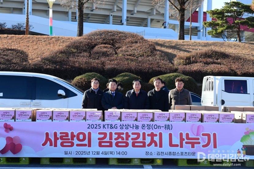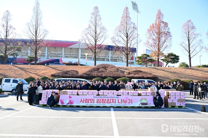 ‘사랑의 김장나누기’는 KT&G 김천공장이 후원하고 김천시지역사회보장협의체와 김천시장애인복지관이 공동 주관하는 대표적인 지역 나눔 사업으로, 올해는 저소득층 830세대(읍면동협의체 290세대, 사회복지시설 36개소 540세대)에 가구당 10kg의 김장김치를 지원해 총 5,000만 원 상당의 나눔이 이루어졌다.