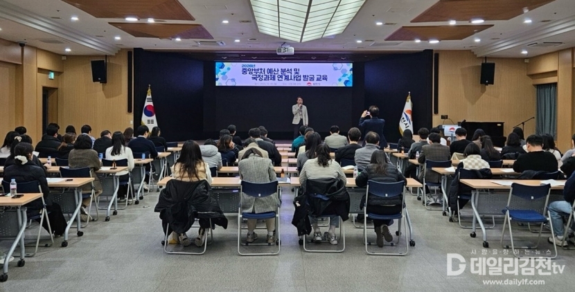 김천시는 지난 8일 시청 3층 강당에서 담당 공무원 100명을 대상으로‘2026년도 중앙부처 예산 분석 및 국정과제 연계사업 발굴 교육’을 실시했다.