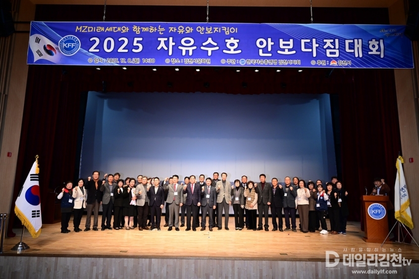 한국자유총연맹 김천시지회(회장 여영각)는 지난 8일 ‘2025 안보강연회 및 안보다짐대회’를 개최해 자유민주주의 수호 의지를 다졌다.