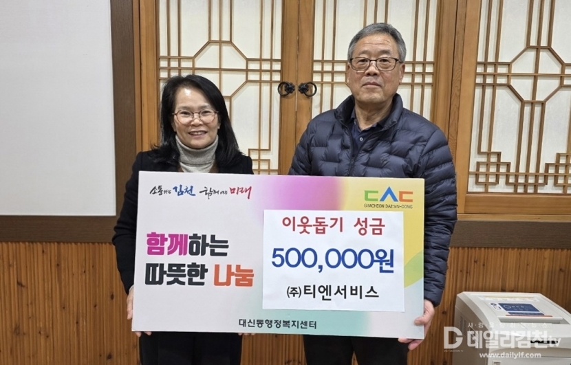 시설물관리 전문업체 ㈜티엔서비스(대표 이병갑)는 12월 12일, 지역 내 어려운 이웃을 돕는 데 사용해 달라며 김천복지재단에 성금 50만 원을 기탁했다.