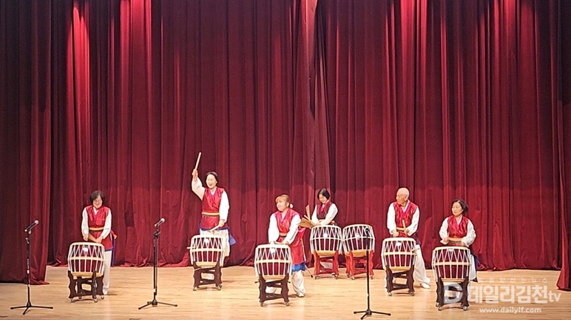 김천시는 김천문화원 제28기 문화학교 성과공유회가 12월 15일 오후 2시 김천시립문화회관에서 개최되었다고 밝혔다. 이번 성과공유회에서는 한국무용과 사물놀이, 가요, 아코디언·오카리나 연주, 난타 공연이 이어졌고, 시창작·문예창작(시화)과 문인화·서예·서화, 사군자 작품 전시가 함께 열려 다양한 문화예술 활동을 한자리에서 선보였다.