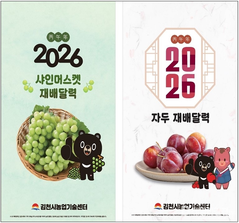 김천시는 포도·자두 농업인의 안정적인 생산과 품질 향상을 지원하기 위해 「2026년 샤인머스켓·자두 재배 매뉴얼 달력」 9,000부를 제작해 읍면동 행정복지센터를 통해 배부한다고 밝혔다.