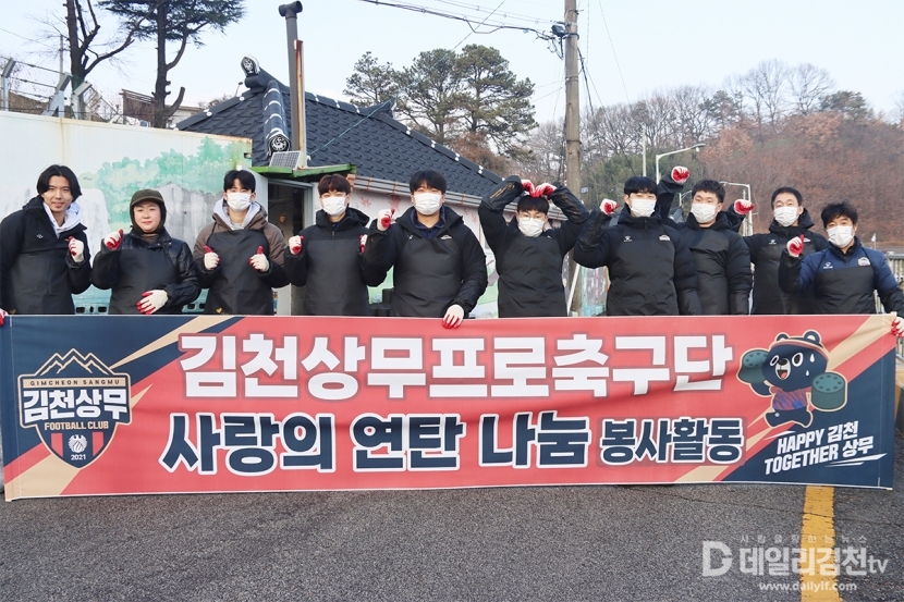 김천상무프로축구단(대표이사 이재하)이 12월 17일, 김천시 모암동 일대를 찾아 ‘사랑의 연탄 나눔’ 봉사활동을 진행했다. 행사에는 김천상무 임직원과 함께 ‘2025 팬즈데이 참여자가 함께 했다.