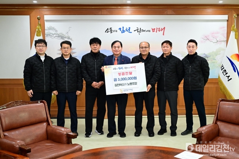 김천버스노동조합(조합장 남한수)은 지난 18일 김천시청을 방문해 지역 사랑 실천을 위한 불우이웃돕기 성금 300만 원을 전달하며 따뜻한 마음을 보탰다.