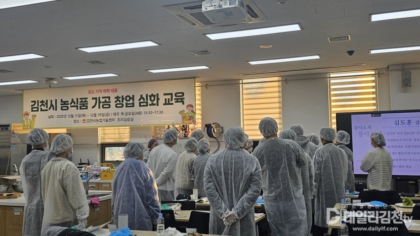 김천시는 19일 오후, 김천시농업기술센터 농촌생활교육관 조리실습실에서 ‘2025년 김천시 농식품 가공 창업 심화 교육’ 수료식을 성황리에 개최했다.