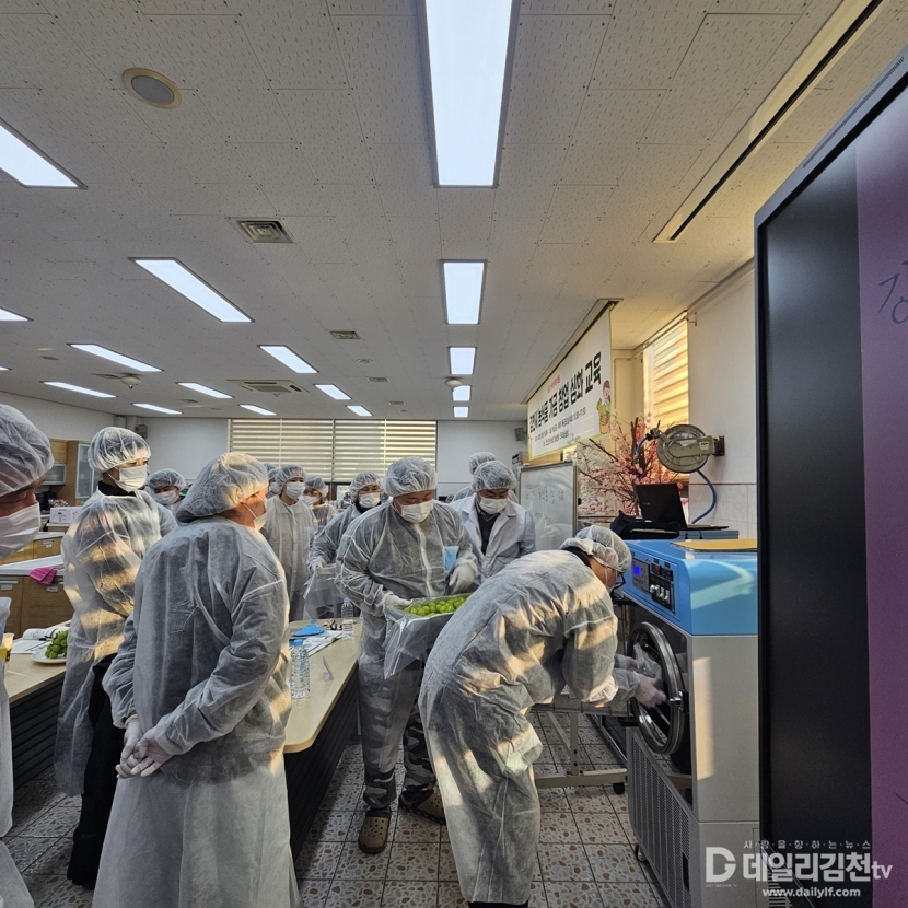 김천시는 특히 샤인머스켓 가격 하락에 대응하고 농산물 부가가치 향상을 위한 가공 분야 기술 노하우를 습득하여 식품 가공 창업인을 육성하기 위해 12월임에도 불구하고 교육을 진행했다. 당초 교육생 15명으로 기획됐던 교육은 신청 인원이 많아 21명의 교육생으로 교육 인원이 변경되며 농산물 가공 교육에 열기를 더했다.