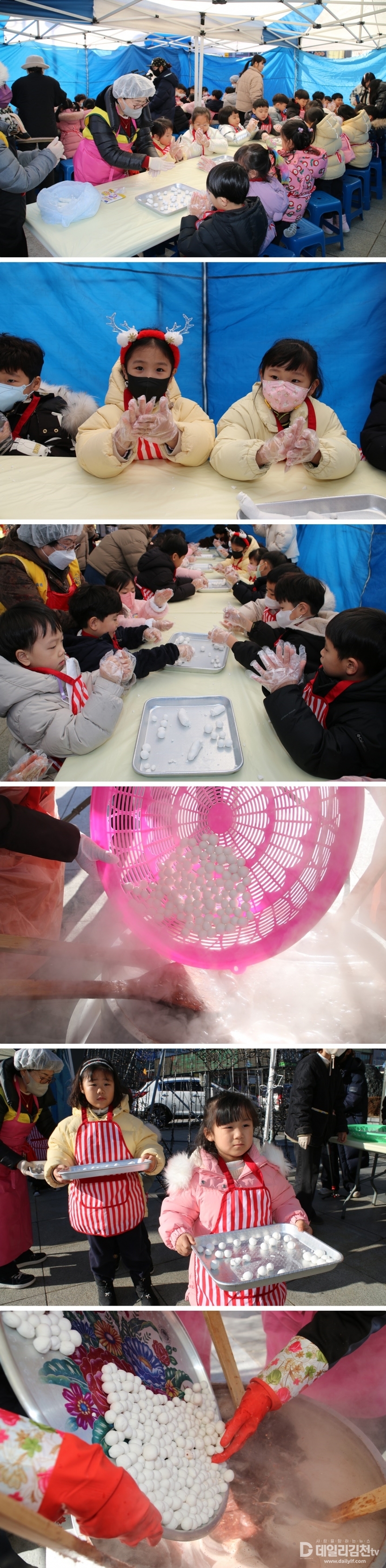 행사에는 김천시 관내 유치원생들이 참여해 팥죽에 들어갈 새알을 손수 빚으며 전통 음식을 체험했다. 아이들은 완성된 팥죽을 이웃과 나누는 과정에도 함께하며 나눔의 의미를 자연스럽게 배웠다. 또 김천문화원 문화사랑회 회원들이 힘을 보태 정성껏 끓인 팥죽을 인근 주민들에게 전달했다. 현장은 겨울 추위 속에서도 이웃 간 정이 오가는 따뜻한 분위기로 채워졌다.