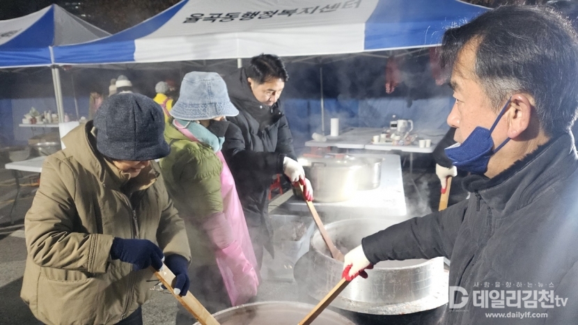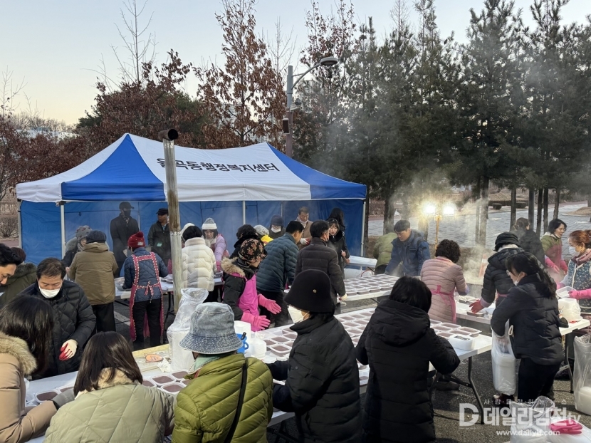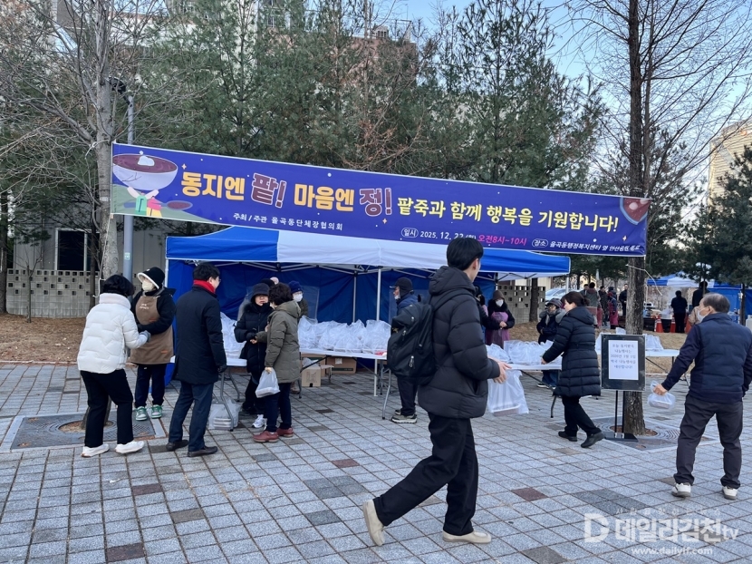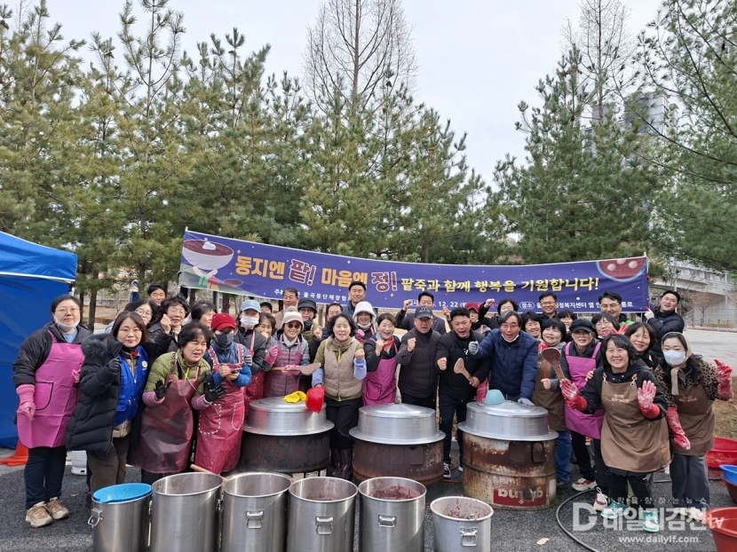 김천시 율곡동단체장협의회(회장 이현수)는 22일 동지를 맞이해 지역 주민들의 큰 호응 속에 「동지맞이 팥죽 나눔 행사」를 성황리에 마무리했다.