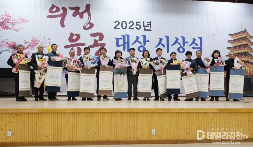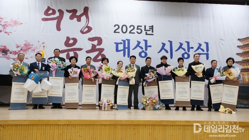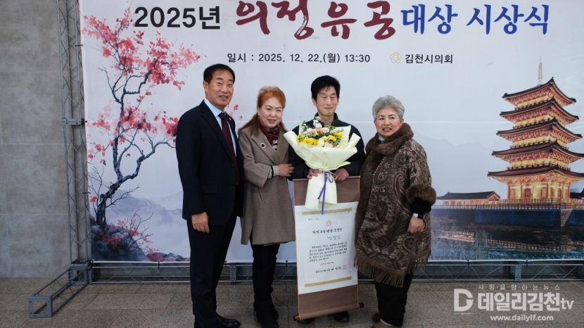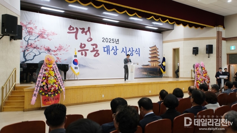 김천시의회(의장 나영민)는 22일 김천시 평생교육원 대강당에서 나영민 의장을 비롯한 시의원들과 배낙호 시장, 전직 의원, 기관·단체장, 의회 소속 단체, 수상자 및 가족 등 200여 명이 참석한 가운데「2025년 의정유공대상 시상식」을 개최했다.