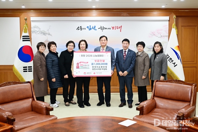 한국자유총연맹 김천시지회 여성회(지회장 여영각, 여성회장 박외선)는 24일, 어려운 이웃을 돕기 위해 ‘희망2026 나눔캠페인’에 성금 100만 원을 기탁했다.