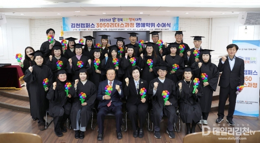 김천대학교(총장 윤옥현)는 2025년 경북도민행복대학 김천캠퍼스 3050리더스 과정 명예학위 수여식을 본관 세미나실에서 개최했다고 25일 밝혔다. 이번 수여식은 김두학 김천대학교 평생교육원 부원장의 사회로 진행됐다.