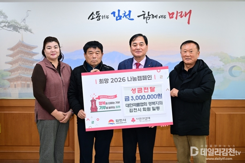 대한곡물협회 김천시지부(지부장 윤진채)에서는 26일 김천시청을 방문해 ‘희망2026 나눔캠페인’ 성금 300만 원을 기부했다.