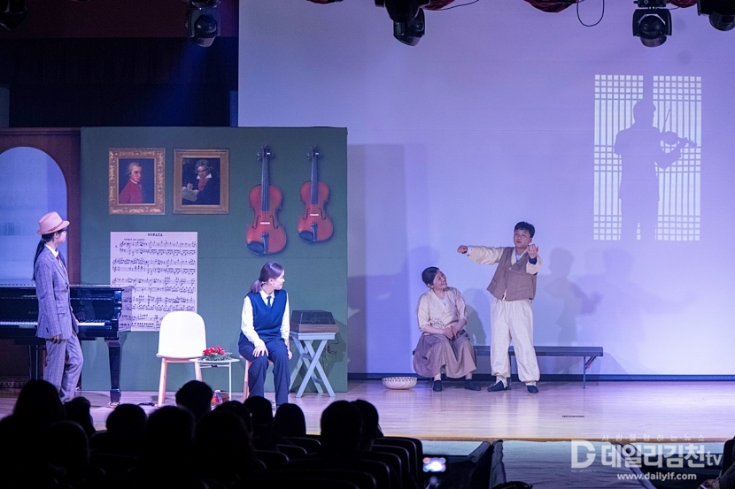 이번 작품은 김천 감문 출신 바이올린 제작 명장 진창현의 삶과 예술 세계를 소재로, 그의 과거와 오늘날 감문중학교 학생들의 현재를 넘나들며 ‘소리’와 ‘울림’이 세대를 넘어 이어진다는 메시지를 섬세하게 풀어냈다. 지역의 인물과 학교의 현재를 연결한 서사는 관객들에게 깊은 인상을 남기며 지역 기반 예술교육의 의미를 다시 한 번 되새기게 했다.