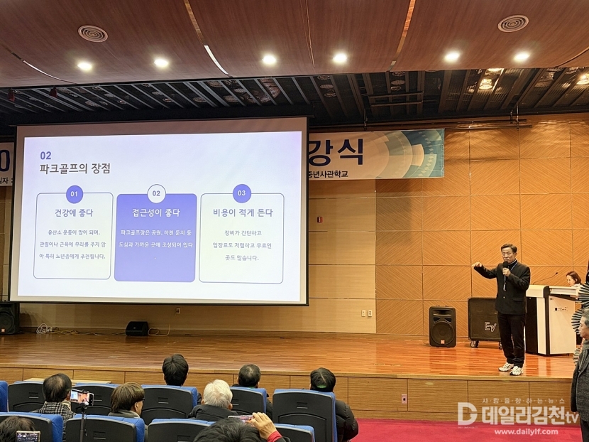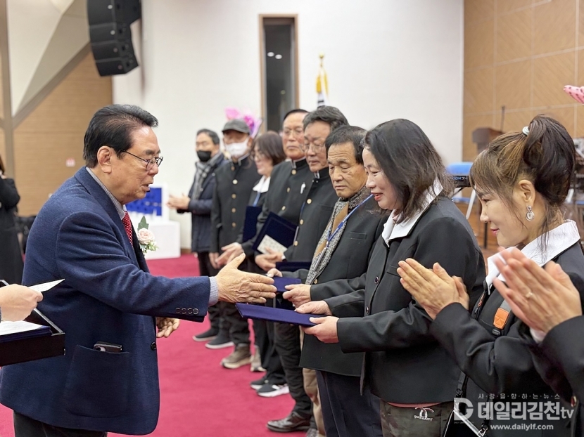 이번 행사는 김천시가 주최하고 경북보건대학교 김천시신중년사관학교가 주관한 행사로, 신중년사관학교 교육과정을 이수한 학생과 내빈 등 약 160명이 참석해 1년간의 교육 성과를 공유하고 수료를 축하하는 자리로 마련됐다.