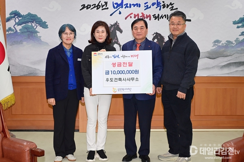 김천시 우도건축사사무소(건축사 이재경)에서는 30일 어려운 이웃을 위해 사용해 달라며 김천복지재단(이사장 배낙호)에 성금 1,000만 원을 기탁했다.