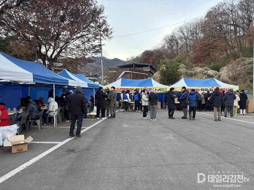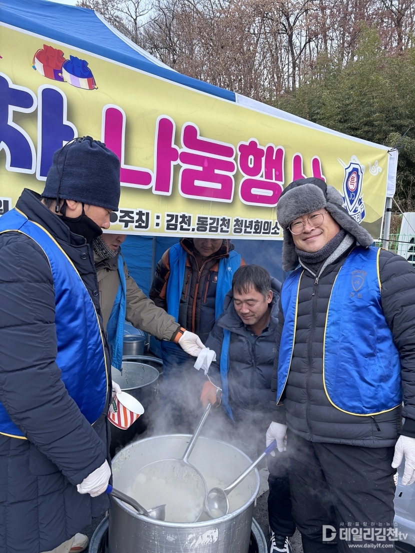김천‧동김천청년회의소는 새해를 맞아 1일 김천시 고성산 길목인 김천서부초등학교 일원에서 시민과 등산객을 대상으로 떡국 나눔 봉사활동을 펼치며 따뜻한 새해 인사를 전했다.