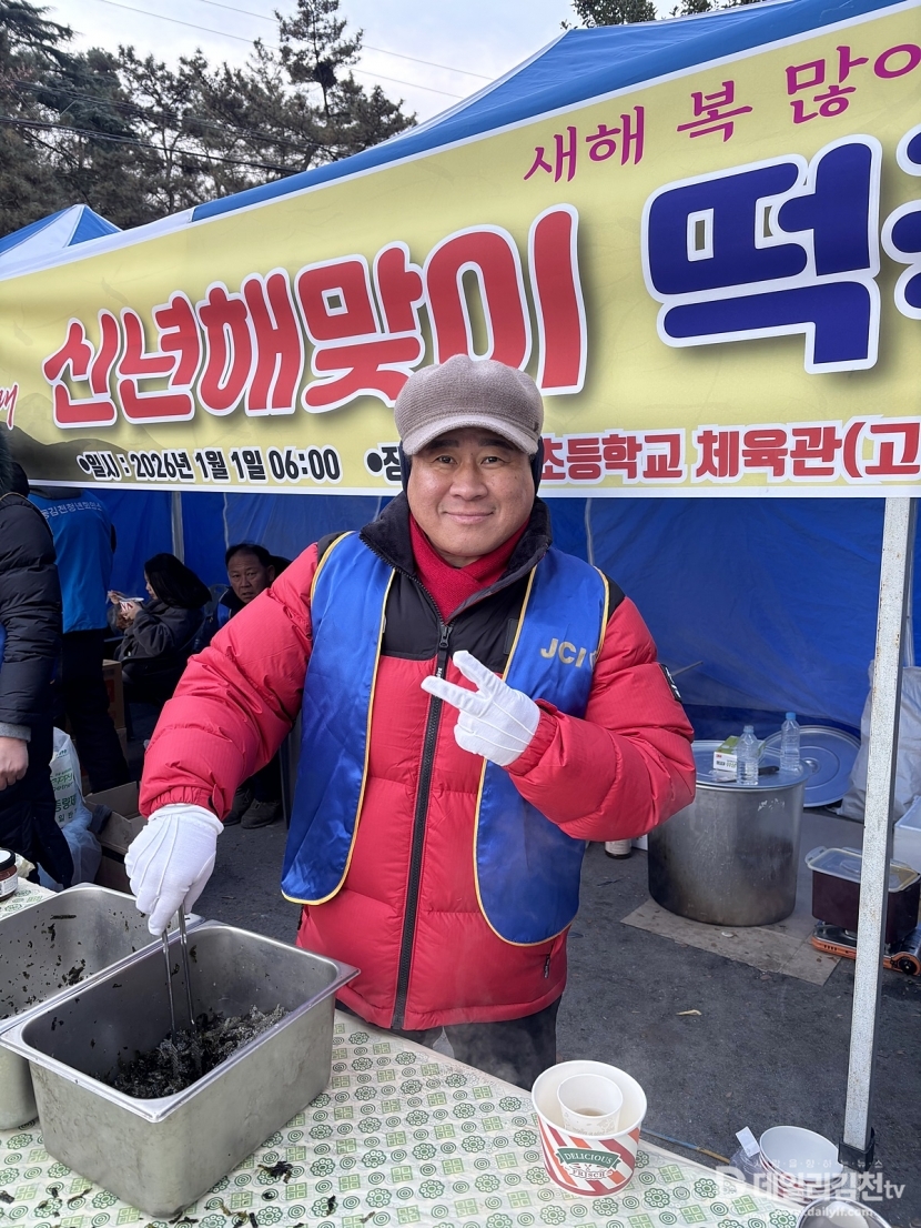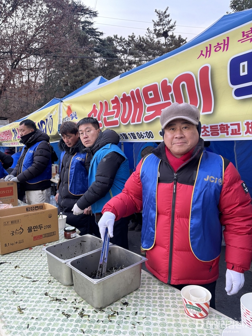 이날 봉사에는 김천‧동김천청년회의소 회원들이 참여해 새벽부터 정성껏 준비한 떡국과 따뜻한 차를 나누며, 새해를 맞아 고성산을 찾는 시민들의 건강과 안녕을 기원했다.