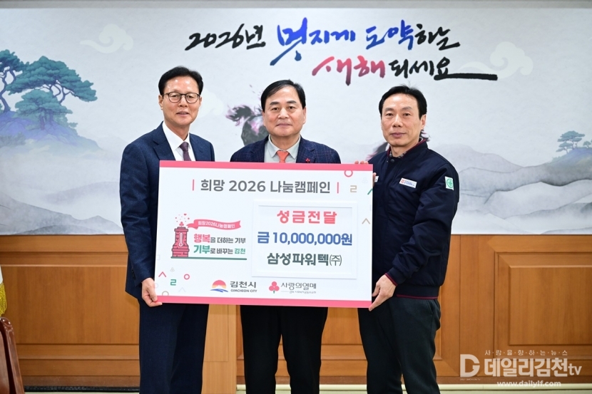 김천시(시장 배낙호)는 지난 6일 삼성파워텍㈜(대표 김형조)로부터 희망2026나눔캠페인 성금 1,000만 원을 전달받았다고 밝혔다.
