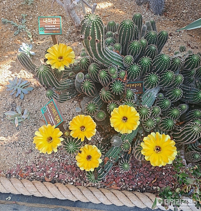 이번에 개화한 선인장들은 기둥형 및 군생형 선인장으로, 일반적인 관엽식물과 달리 짧은 기간 동안만 꽃을 피우는 특징을 가지고 있어 관람 시기가 매우 제한적이다. 특히 노란색, 연분홍색, 흰색 등 화려한 색감의 대형 꽃이 줄기 측면이나 상단에서 직접 피어나는 독특한 개화 형태를 보여 평소 쉽게 접하기 어려운 볼거리를 제공한다.