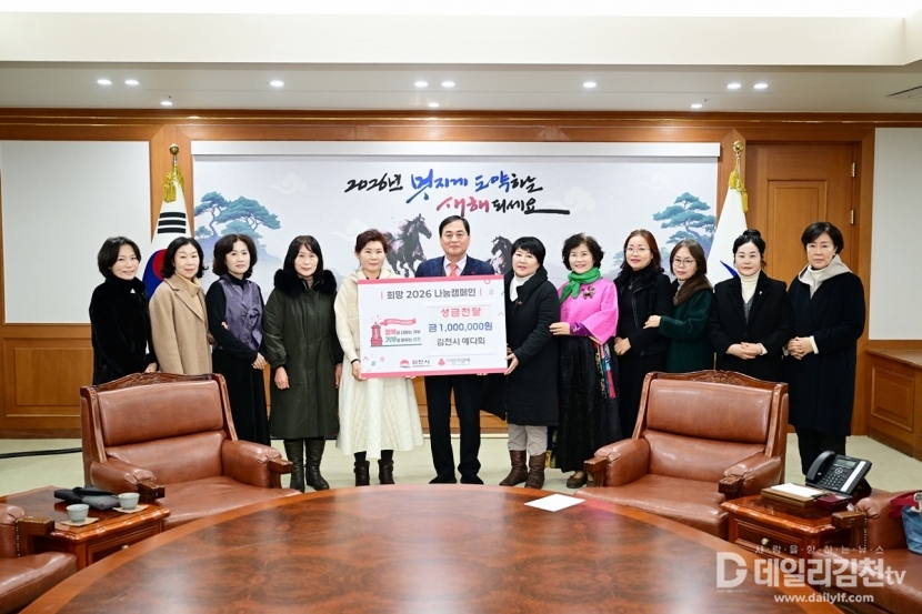 김천시(시장 배낙호)는 지난 8일 김천시예다회(회장 박지수)로부터 희망2026나눔캠페인 성금 100만 원을 전달받았다고 밝혔다.