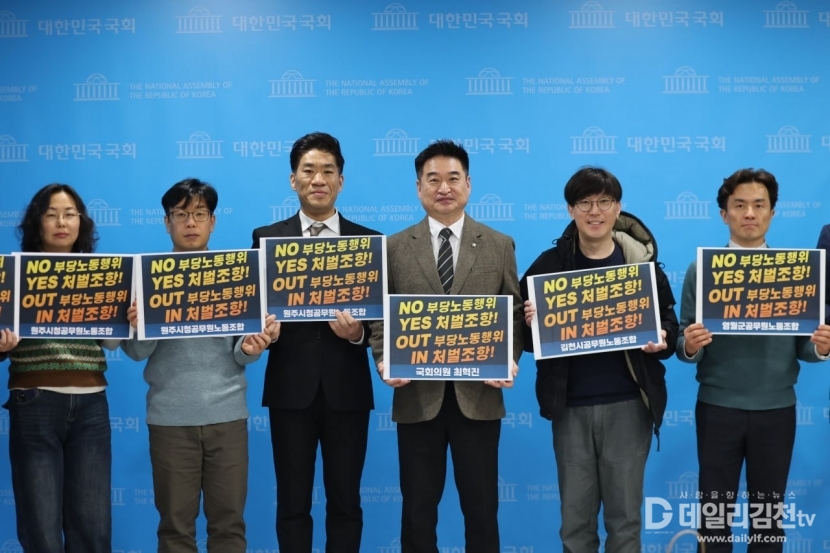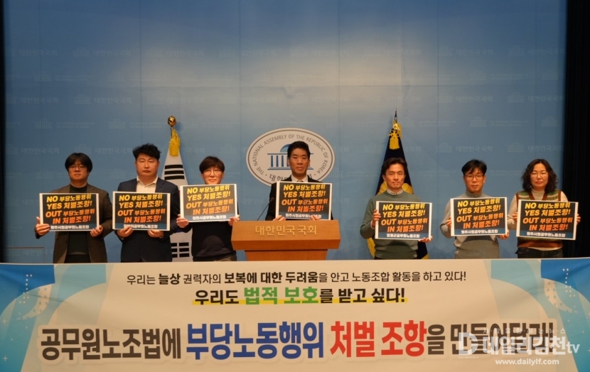 김천시공무원노동조합(이하 김천시공무원노조)은 원주시, 영월군공무원노동조합과 지난 13일 서울 국회 소통관에서 기자회견을 열고, 공무원의 노동권을 실질적으로 보장하기 위한 「공무원노조법」의 부당노동행위 처벌 조항 신설을 촉구했다.