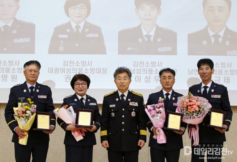 이 자리에서는 그동안 투철한 사명감과 봉사정신으로 지역 안전문화 정착에 공헌한 이미숙 전 여성연합회장, 이영원 전 어모남성의용소방대장, 권주희 전 대광여성의용소방대장, 이성우 전 대덕남성의용소방대장, 박규태 전 남면남성의용소방대장 5명에게 공로패를 수여했다.