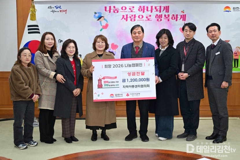 김천시지역아동센터협의회(회장 이정미)는 지난 26일 시청을 방문하여 지역사회 나눔 문화 확산과 이웃 사랑 실천을 위해 성금 120만 원을 기탁했다.