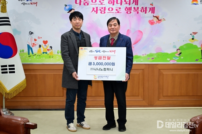 김천복지재단(이사장 배낙호)은 지난 26일 ㈜니나노컴퍼니(대표 김건홍)로부터 이웃돕기 성금 300만 원을 전달받았다고 밝혔다.
