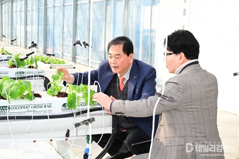그 일환으로 시는 5일 봉산면 태화리에 조성된 스마트팜 온실 신축 선도 농가를 방문해 운영 현황을 점검하고 현장의 목소리를 청취했다.