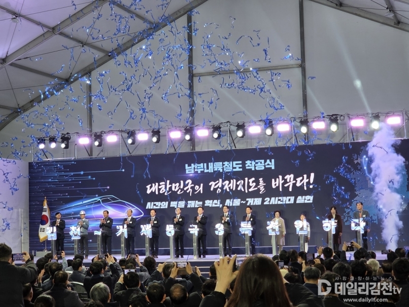 배낙호 김천시장이 6일 경남 거제시에서 개최된 남부내륙철도 착공식에 참석해 남부내륙철도 건설사업의 본격적인 출발을 함께 축하했다.