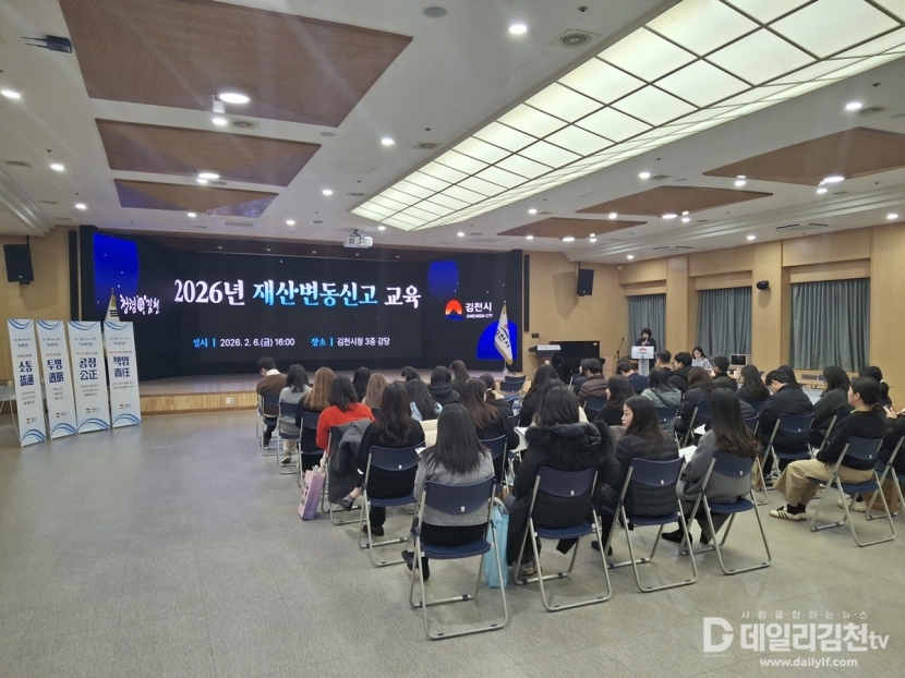 김천시는 지난 6일 시청 3층 강당에서 직원 70여 명을 대상으로 ‘2026년 정기 재산변동신고 대비 맞춤형 교육’을 실시했다.