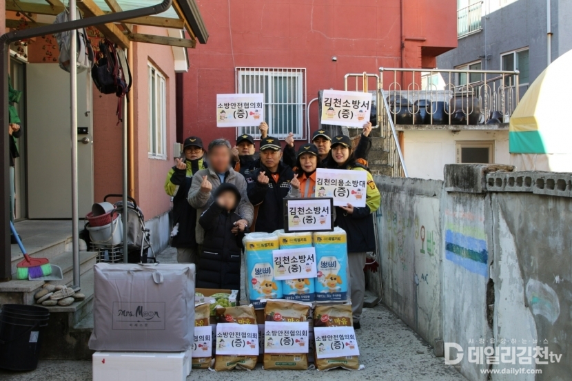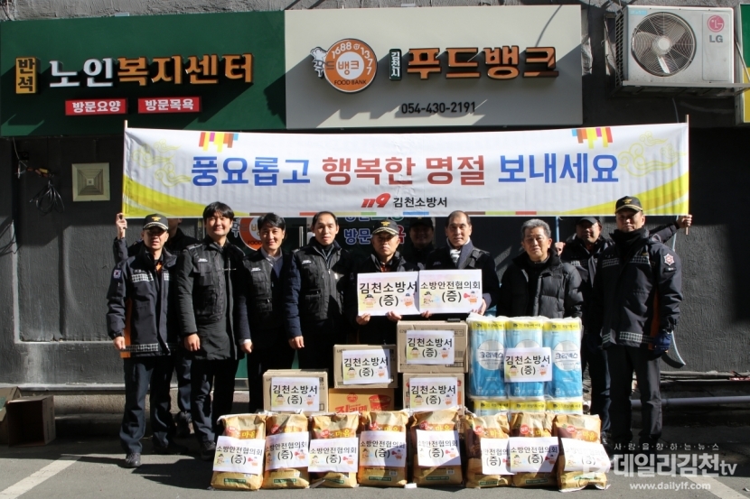 김천소방서(서장 송영환)는 설 명절을 맞아 9일 김천시 모암동에 위치한 ‘반석 노인복지센터’와 조손가정을 방문해 위문품을 전달하며 따뜻한 나눔을 실천했다.