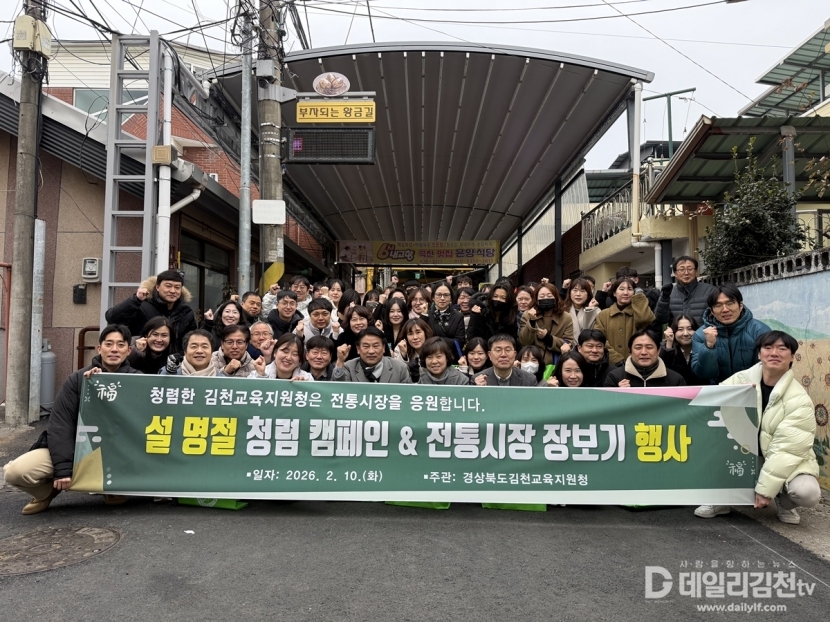 경상북도김천교육지원청(교육장 모태화)은 10일 오전 10시 30분 김천 황금시장 일원에서 민족 고유의 명절인 설을 맞아 청렴캠페인 및 전통시장 장보기 행사를 실시했다.