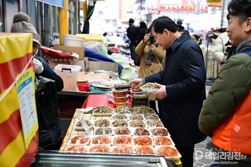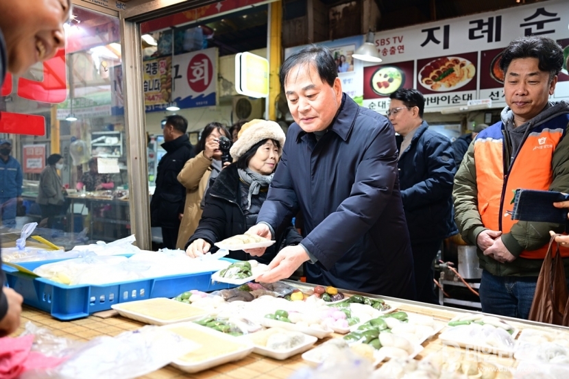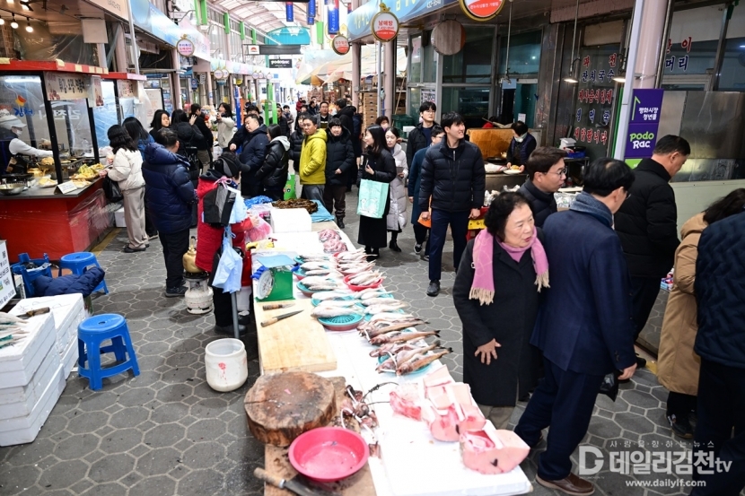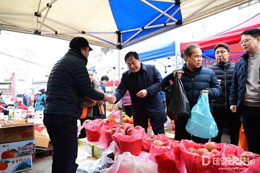 이번 행사에는 김천시청 간부 공무원들이 참여해 미리 준비한 김천사랑상품권으로 설 제수용품과 생필품을 직접 구매하며 위축된 소비 심리로 어려움을 겪는 상인들과 소통하는 시간을 가졌다.