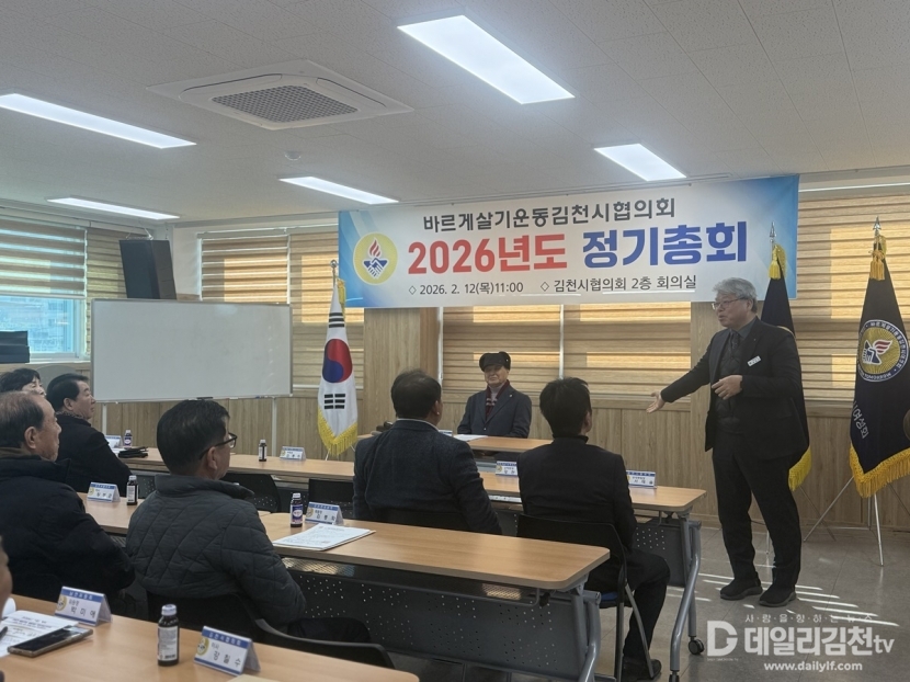 바르게살기운동김천시협의회(회장 성경복)는 12일 오전 11시 바르게살기운동김천시협의회 사무국 2층 회의실에서 2026년 정기총회를 개최했다.