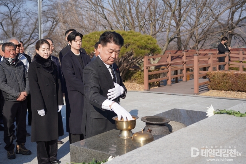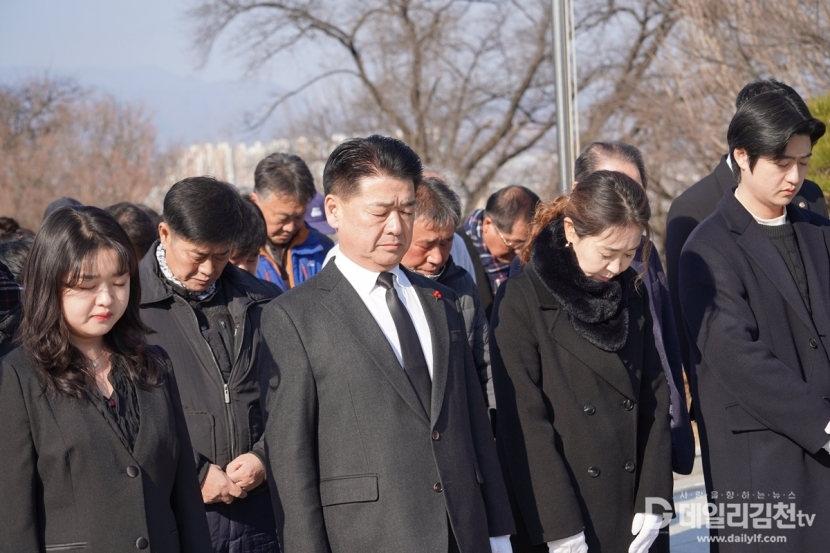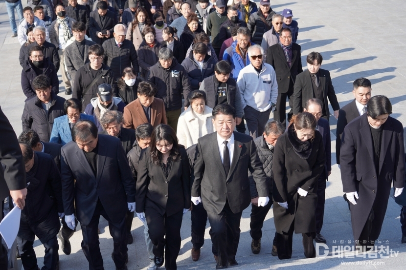 참배에는 지지자들과 관계자들이 함께했으며, 엄숙한 분위기 속에서 헌화와 묵념이 진행됐다.
