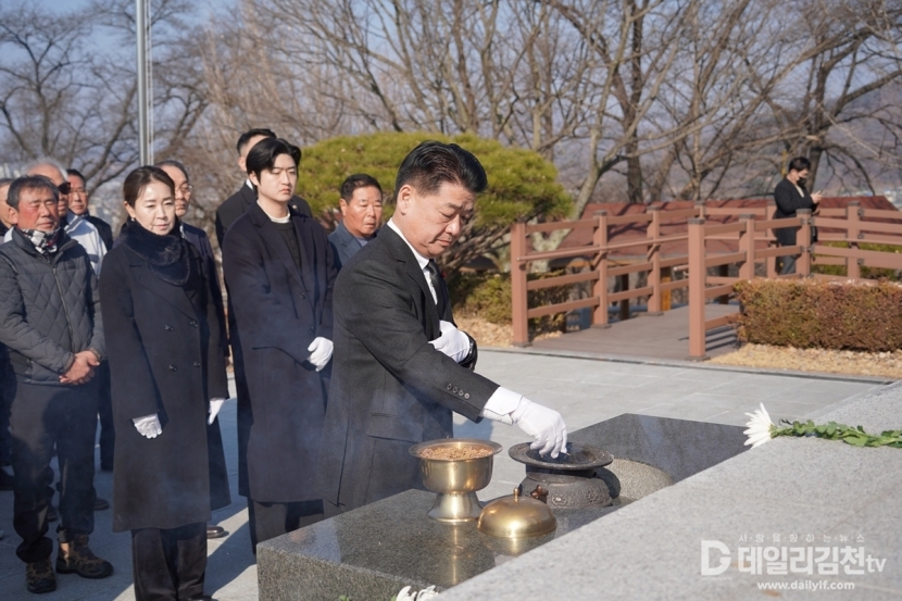나 의장은 이날 오전 예비후보 등록 절차를 완료한 직후, 경북 김천시 성내동에 위치한 김천시 충혼탑을 찾아 순국선열과 호국영령에 대한 참배로 첫 공식 일정을 시작했다.