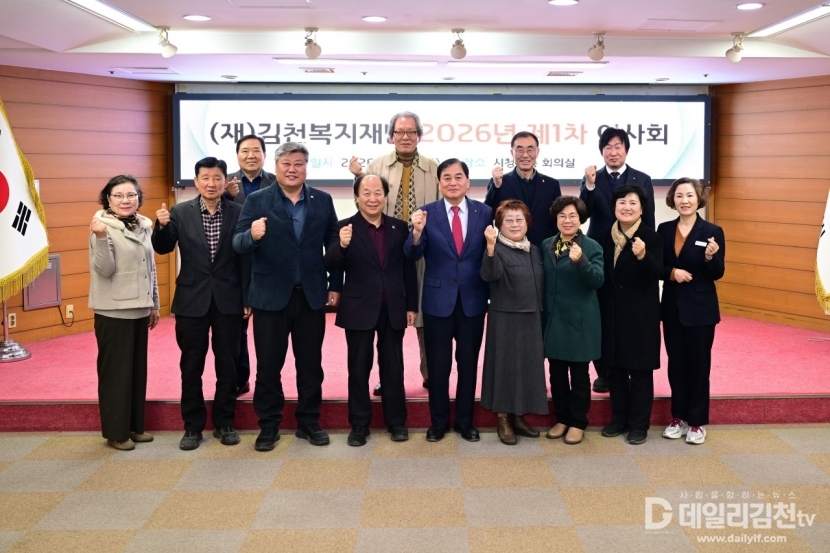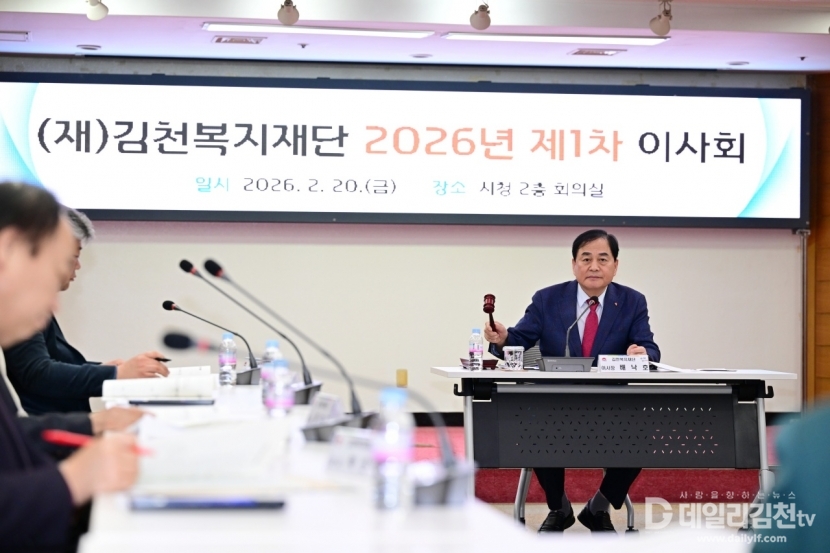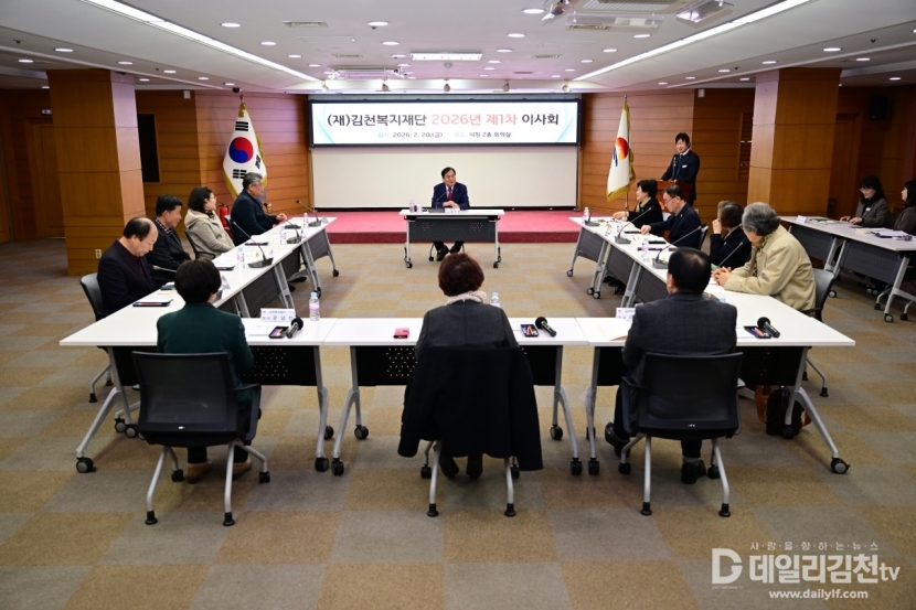 (재)김천복지재단은 지난 20일 시청 2층 회의실에서 「2026년 제1차 이사회」를 개최했다고 밝혔다. 이번 이사회에는 12명의 임원이 참여해, 2025년도 결산 심의와 함께 향후 재단의 주요 사업 운영 방향에 대한 심도 있는 논의를 진행했다.