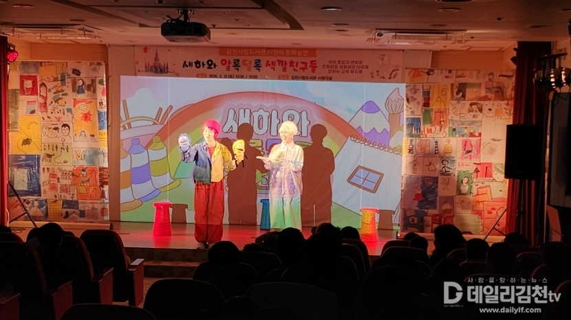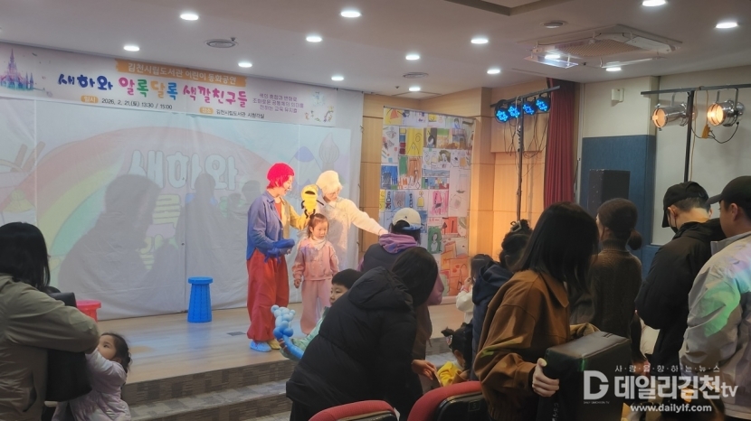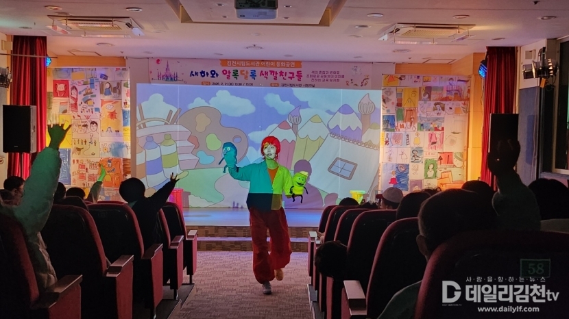김천시립도서관은 지난 21일 어린이를 동반한 가족 180명이 참석한 가운데 어린이 뮤지컬 「새하와 알록달록 색깔친구들」을 성황리에 마쳤다고 밝혔다.