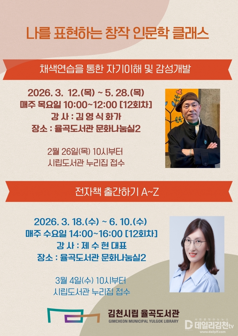 김천시립율곡도서관(관장 이신기)은 시민의 일상 속 독서문화 확산과 평생학습 기반 강화를 목표로 2026년 한 해 동안 추진할 독서․문화프로그램, 행사 운영 방향을 종합적으로 밝혔다.