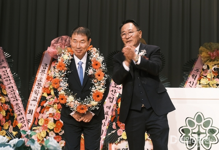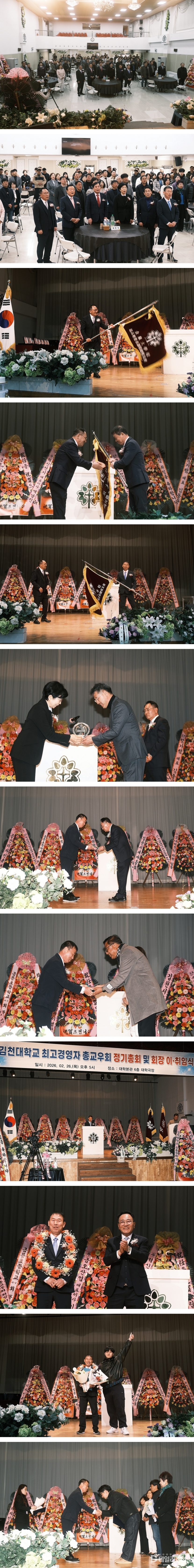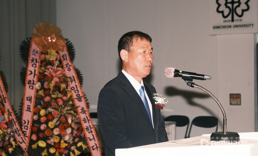 김천대학교 최고경영자과정 총교우회 제11대 회장에 김삼덕 수석부회장이 선출돼 26일 오후 6시 학교 대학극장에서 취임식을 가졌다.