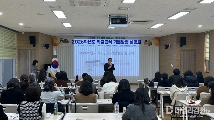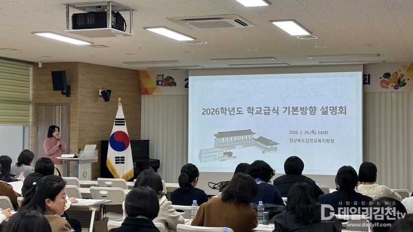 경상북도김천교육지원청(교육장 모태화)은 지난 26일 김천학생문화예술센터에서 관내 영양교사 및 영양사 50여 명을 대상으로 ‘2026학년도 학교급식 기본방향 설명회’를 개최했다.